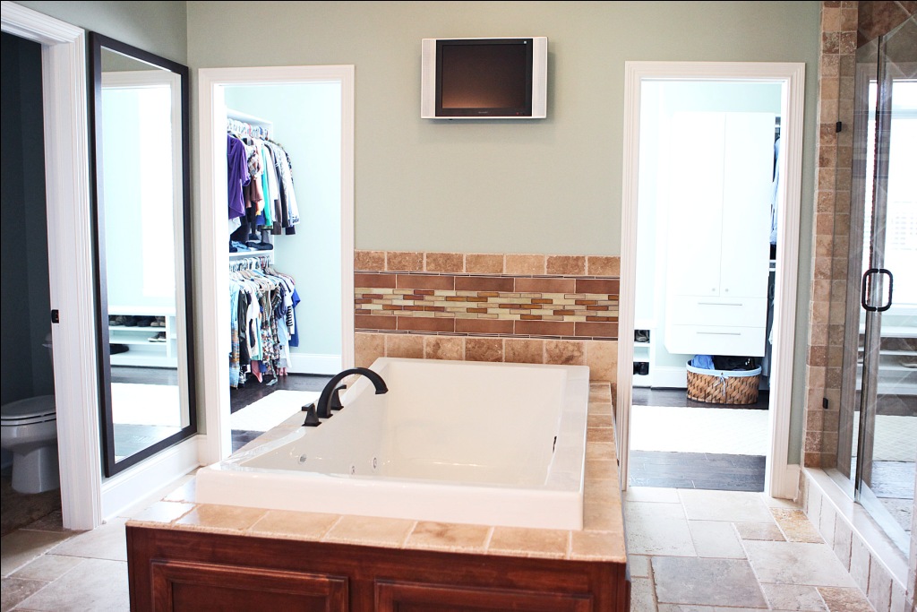 Custom-Built Home Bathroom: Double Walk-In Closets, Bathtub, Walk-In Shower; Luxury Home Builder, Indianapolis, Indiana