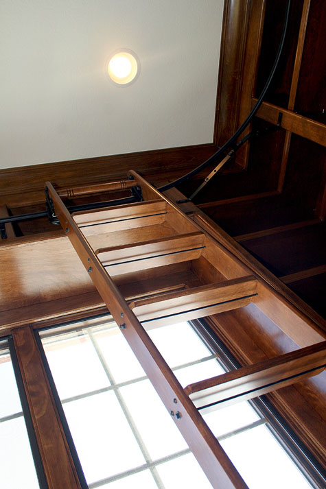 Madison Custom Homes Inc. builds custom luxury homes in Central Indiana. We present a gallery of design details, such as this custom-built sliding ladder and rail system in the library.
