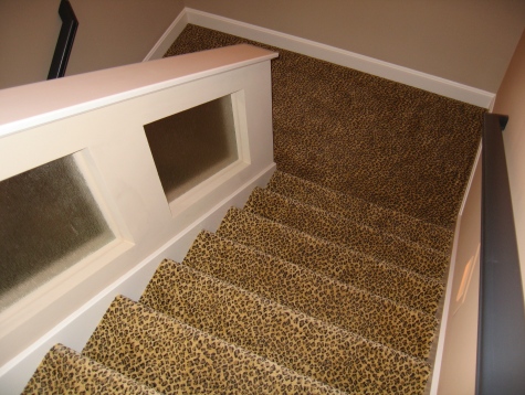 Design Detail: Decorative Staircase Enclosure, Leopard Print Carpet, Custom Home Builder, Indianapolis, Indiana
