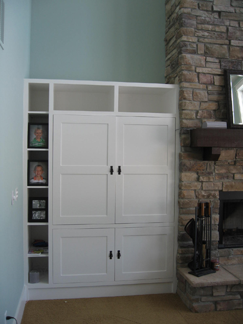 Madison Custom Homes Inc. builds custom luxury homes in Central Indiana. The Great Room of this home features a 20 ceiling with fan, a custom-built cut stone fireplace and built-in cabinets and shelving.
