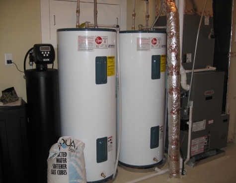 Madison Custom Homes Inc. builds custom luxury homes in Central Indiana. We present a gallery of infrastructure details, such as this utility room with water softener and dual water heaters, a standard feature in all custom homes we build.