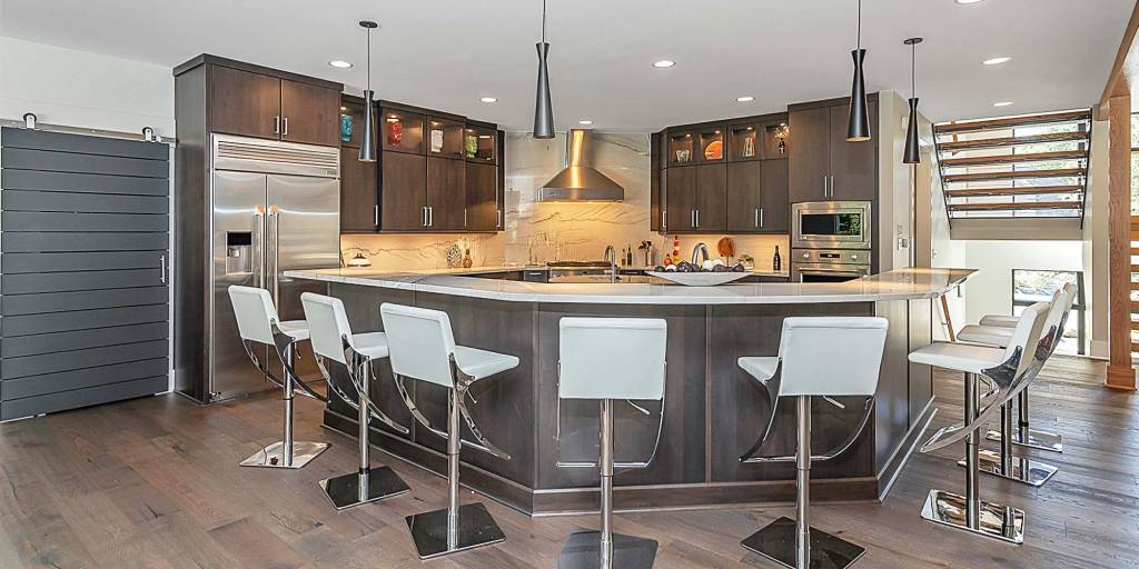 Hand-Made Kitchen Cabinets, Double-Sided Stainless Steel Sink, Breakfast Bar Pass-Through, Island Work Area, Luxury Homes Built – Indianapolis, Central Indiana
